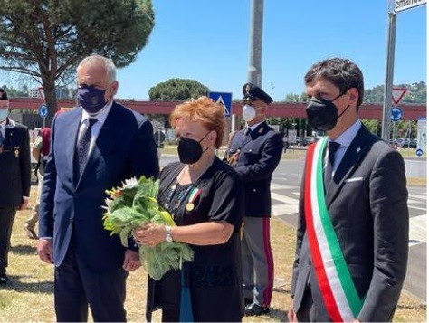 PERUGIA – Il sacrificio di Emanuele Petri è stato sicuramente la svolta e il momento determinate per la fine delle Br e, oltre a consentire la cattura di Nadia Desdemona Lioce (mentre Mario Galesi morì nel conflitto a fuoco, ndr), ha permesso di trovare gli elementi che hanno poi fatto identificare tutti gli altri e fatto sgominare le nuove Brigate rosse: è quanto ha ricordato il capo della polizia, prefetto Lamberto Giannini, in occasione dell’ intitolazione della via prospiciente la questura di Perugia alla memoria di Petri, sovrintendente della polizia ferroviaria, Medaglia d’oro al Valore civile, ucciso il 2 marzo del 2003 durante un controllo a quelli che si rivelarono i capi dell’organizzazione eversiva. La cerimonia si è svolta alla presenza della vedova del poliziotto, Alma, che ha scoperto la targa con il nome del marito. Presenti anche la presidente della Regione Umbria Donatella Tesei, il prefetto Armando Gradone, il procuratore generale Sergio Sottani e quello della Repubblica, Raffaele Cantone, il questore Antonio Sbordone, e il sindaco, Andrea Romizi.