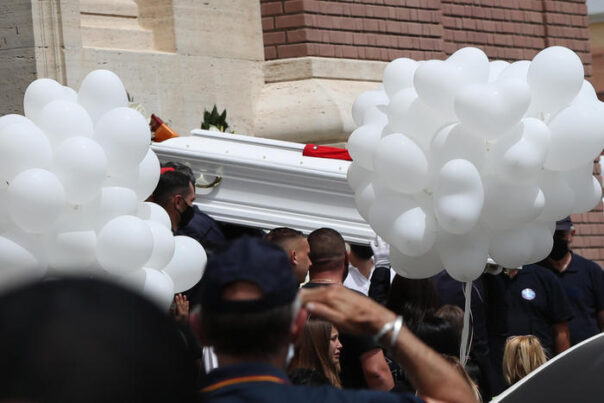 OSTIA – È una piazza silenziosa e commossa quella che si è raccolta nel piazzale antistante la chiesa Santa Maria Regina Pacis di Ostia per dare l’ultimo saluto a Daniel e David Fusinato, i due fratellini di 10 e 5 anni uccisi nella strage di Ardea. In occasione della cerimonia, a cui hanno preso parte anche il presidente della Regione Lazio Nicola Zingaretti e la sindaca di Roma Virginia Raggi, sono state realizzate delle composizioni di palloncini bianchi e celesti, i colori della Lazio tanto amata dai fratellini. All’uscita del feretro dalla chiesa i presenti hanno acceso dei fumogeni biancocelesti e liberato nel cielo i palloncini, seguiti poi da due colombe che sono volate via assieme.