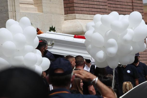 Strage di Ardea: i funerali dei fratellini uccisi, con palloncini bianchi e celesti