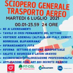 FIRENZE – In merito alla problematica della vendita di TAH a Consulta Spa ci sarà uno sciopero di 24h indetto da tutte le sigle sindacali presenti nei due aeroporti toscani CIGL CISL UIL UGL USB CUB: 6 LUGLIO sciopero di 24h per la vendita di TAH in tutti e due gli scali Toscani.