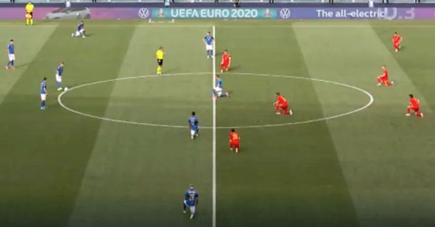 Il capitano per ora infortunato Giorgio Chiellini aveva spiegato perché gli azzurri non si erano inginocchiati contro l’Austria, non escludendo però di poterlo fare nelle prossime partite a determinate condizioni: «Non c’è stata nessuna richiesta – aveva dichiarato prima del fischio d’inizio – quando capiterà e ci sarà la richiesta dell’altra squadra, ci inginocchieremo per sentimento di solidarietà e sensibilità verso i nostri avversari».