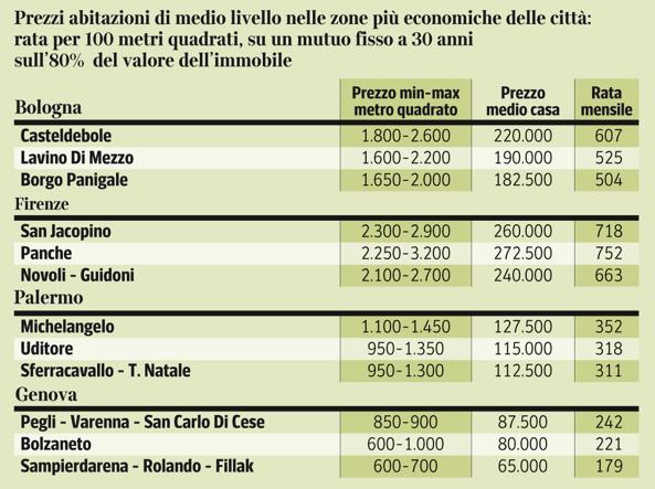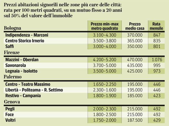 Nelle tabelle sottostanti riassumiamo la situazione di Firenze e di altre città consimili, come Genova, Palermo e Bologna.