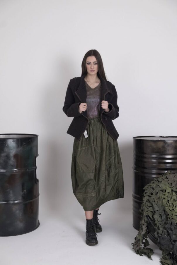 E’ cosi quindi che paracadute in materiale sintetico, diventano giacche performanti dall’elevata resistenza, mentre coperte, opportunamente trattate, e altri materiali destinati ad essere accantonati, si trasformano in cappotti, acquisendo un elevato valore rispetto all’originale. Materiali che altrimenti non avrebbero goduto di una seconda vita, ma che in questo caso creano un profondo legame fondato su valori e su ideali comuni, diffondendo un messaggio positivo per le nuove generazioni.