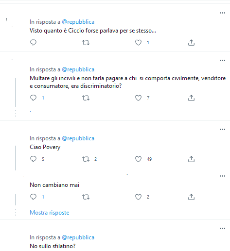 I lettori di repubblica hanno postato commenti sarcastici su twitter del giornale. Ecco alcuni esempi: