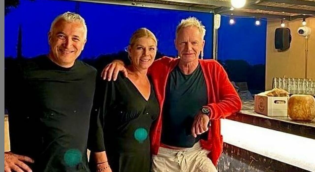 Sting con Claudia e Paolo, gestori della sua pizzeria