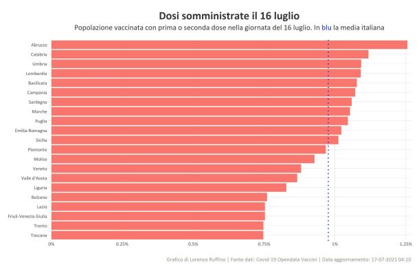 ROMA – «Anche ieri, 17 luglio 2021, Toscana ultima in Italia per vaccinazioni, come emerge dal sistema Covid-19 Opendata Vaccini allegato. Ieri abbiamo appreso, da fonte Gimbe, che solo la Calabria ha fatto peggio delle Toscana rispetto alla percentuale sin qui coperta da un completo ciclo vaccinale, oggi apprendiamo che nella giornata di ieri, 16 luglio, abbiamo di nuovo fatto peggio di tutti nella campagna vaccinale. Sin dall’inizio della campagna il Presidente Giani le sta sbagliando tutte!». Così esordisce l’On. Stefano Mugnai, Vice Capogruppo Vicario di Coraggio Italia alla Camera. Che aggiunge: «Chi dimentica la decisione scellerata assunta da Giani di vaccinare trentenni di varie categorie professionali, lasciando in balia della pandemia e in molti casi ad un tragico destino centinaia di migliaia di fragili, super fragili e over 80, cioè le categorie più a rischio? Talmente grave da farsi richiamare dal Presidente Draghi, costretto a portare all’attenzione del Parlamento l’esempio della Toscana come ‘regione che non stava facendosi adeguatamente carico della salvezza dei propri cittadini piu fragili. Faccio un appello al Governo. Abbiamo eccellenti competenze, qualcuno aiuti Giani. La Toscana e i toscani non meritano di subire oltre questi disastri vergognosi!».