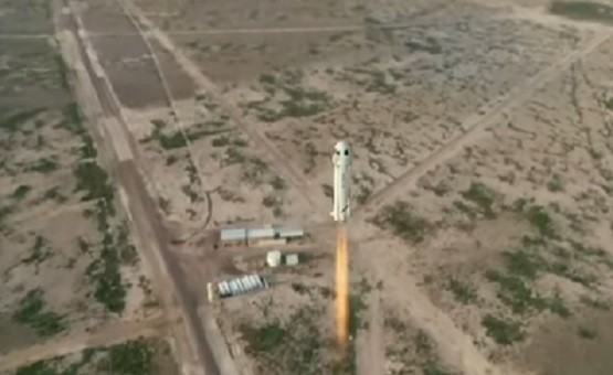 Il volo, che segue di pochi giorni il successo analogo ottenuto dalla Virgin Galactic con a bordo Richard Branson, avviene nel 52/o anniversario dello storico sbarco dell’Apollo 11 sulla Luna.