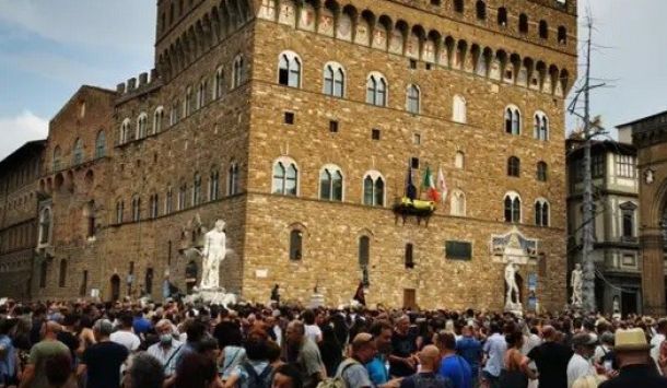 Diverse centinaia di persone hanno dato vita a un’alktr manifestazione, annunciata ma non autorizzata, contro il green pass. Il ritrovo era in piazza della Signoria a Firenze alle 17.30. Slogan contro il Governo e il green pass si sono levati dalla piazza. La questura non aveva autorizzato l’incontro. La manifestazione era stata organizzata tramite un tam tam di whatsapp e social netowrk vari. Una manifestazione molto partecipata. Un migliaio di persone senza bandiere di partiti o movimenti. Si è vissuto qualche momento di tensione all’inizio quando la polizia voleva far spostare i manifestanti verso Piazza dei Gondi, considerando che la manifestazione non era autorizzata.