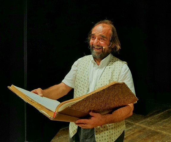 Un uomo non trova le parole per scrivere una lettera d’amore, finché i ricordi scandagliano versi del sommo poeta. Inizia allora ad approfondirne la vita oltre alla scrittura, lo studia, si appassiona, ed è proprio in quel momento che comincia la storia sul palco di un teatro, come al tavolino di un bar per un caffè. L’appassionato ‘cerca parole’ ci racconta curiosità della vita e delle opere del maestro, in una narrazione che fa emergere la storia di una persona comune. La storia di un uomo del medioevo.