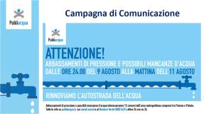 Publiacqua ha previsto un programma di comunicazione all’utenza che prevede azioni specifiche ulteriori a quelle messe in campo normalmente. Saranno effettuate chiamate ai numeri fissi, SMS ai cellulari degli utenti registrati nel nostro Database (ricordiamo che per registrarsi è necessario compilare la form presente sul sito all’indirizzo www. publiacqua.it\contatti\ti-chiamiamo-noi ), volantinaggi nelle aree critiche, post su facebook ai profili selezionati per cap, post su altri canali social. Sul sito di Publiacqua sarà presente una sezione dedicata dove gli utenti potranno trovare informazioni di dettaglio sulle aree impattate per ciascun comune. Sarà effettuata una campagna informativa acquistando spazi sui quotidiani, banner sui principali siti, spot radio e tv, avvisi sugli schermi dei Comuni. Per le utenze non domestiche più sensibili è prevista una comunicazione specifica tramite pec/operatore. A tutti i Comuni verrà inviata comunicazione specifica su aree impattate nel loro territorio.