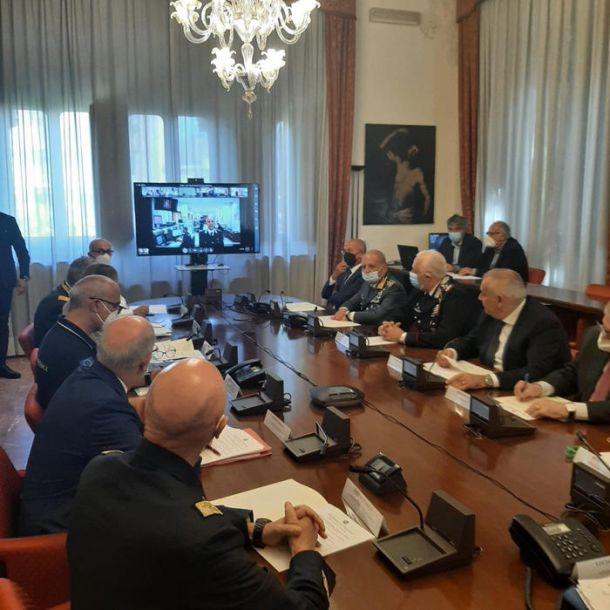 PALERMO – Dopo il collegamento con le sale operative il ministro dell’Interno, Luciana Lamorgese, ha presieduto, nella prefettura di Palermo, il comitato nazionale per l’ordine e la sicurezza pubblica cui hanno partecipato, tra gli altri, il capo di stato maggiore della Difesa, Enzo Vecciarelli, il comandante generale dell’ Arma, Teo Luzi, il comandante generale della guardia di Finanza, Giuseppe Zafarana, il capo della Polizia, Lamberto Giannini, il direttore generale del Dis Elisabetta Belloni, il capo del Dap Bernardo Petralia, il capo dipartimento liberta’ civili e immigrazione Michele Di Bari, il capo dipartimento dei vigili del fuoco Laura Lega, il capo della protezione civile Fabrizio Curcio, il comandante generale delle capitanerie di porto Nicola Carlone, il sottosegretario Nicola Molteni. Oltre al prefetto di Palermo, Giuseppe Forlani, hanno partecipato anche il procuratore a Palermo, Francesco Lo Voi, il sindaco Leoluca Orlando e il presidente della Regione Nello Musumeci.