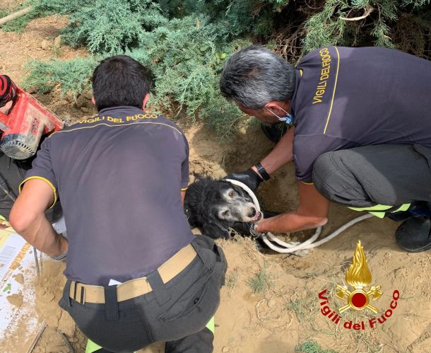 MONTEPULCIANO (SIENA) – I vigili del fuoco del comando di Siena, distaccamento di Montepulciano, sono intervenuti intorno alle ore 12.30 di oggi, 25 agosto 2021, per un soccorso a un cane sulla Strada Statale 146 Sud, nel comune di Montepulciano. Il cane, rimasto intrappolato all’interno di un cunicolo nel terreno, è stato liberato dal personale VF ed estratto in buone condizioni di salute.