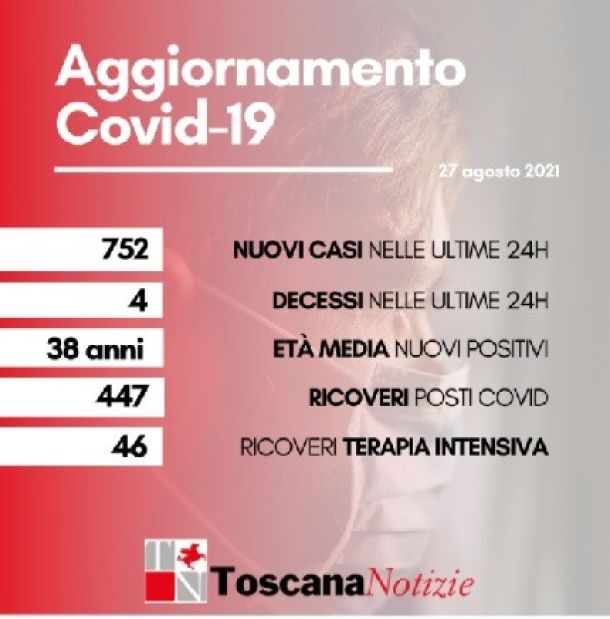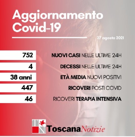 Coronavirus in Toscana: quattro morti (età media 82,8 anni), oggi 27 agosto. E 752 nuovi contagiati