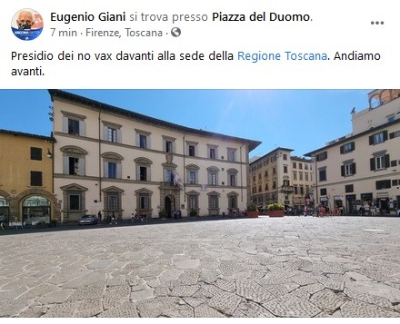 Coronavirus Toscana, presidio no vax davanti alla Regione: i numeri anticipati da Giani 2 settembre, 615 nuovi contagi su 9.045 tamponi