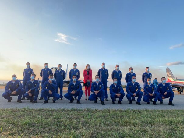 Il presidente della Repubblica ha salutato i piloti della Pattuglia Acrobatica Nazionale al termine dell’esibizione nei cieli sopra la base aerea di Rivolto. Il presidente si è complimentato con la Pattuglia, prima di mettersi in posa per una foto di gruppo. Subito dopo ha lasciato la base.
