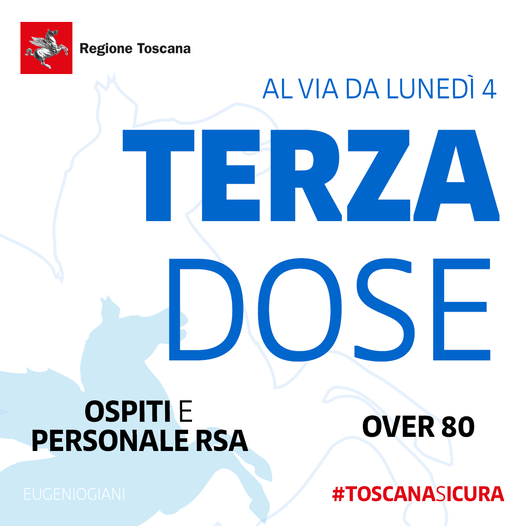 E su Facebook ricorda che da oggi, 4 ottobre, è al via la somministrazione della terza dose di vaccino a ospiti e personale Rsa, over80, ma a seguire, partirà la vaccinazione con terza dose anche per tutti gli altri operatori sanitari, socio-sanitari o assistenziali. In una prima fase (da lunedì 11 ottobre) sarà riservata agli operatori over60 e in condizione di rischio; successivamente (da lunedì 18) potranno richiedere la terza dose anche tutti gli altri operatori. La modalità di prenotazione, in entrambi i casi, sarà attraverso il portale online regionale e la somministrazione avverrà negli hub e negli ospedali.