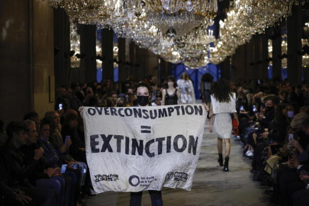 “Consumismo = estinzione”, si leggeva su un manifesto srotolato da un attivista del movimento internazionale di disobbedienza civile balzato sulla passerella installata in una galleria del Louvre nel bel mezzo della sfilata. L’attivista è stato poi portato fuori dalla sicurezza, come ha osservato un fotografo dell’AFP. Trenta attivisti di Extinction Rebellion, Friends of the Earth e Youth For Climate hanno partecipato all’azione, e due di loro sono stati arrestati, secondo una nota diffusa dal movimento.