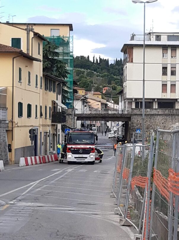 LASTRA A SIGNA (FIRENZE) – Una fuga di gas avvenuta per la rottura di un tubo durante lavori stradali, sta mandando nel caos, da ore, il traffico nella zona di Lastra a Signa e Signa. Chiuso al traffico veicolare e pedonale il Ponte a Signa, sull’Arno, nel comune di Lastra a Signa. E hiuse anche via di Sotto e lungarno Buozzi. Sul posto sono intervenuti i vigili del fuoco. Dalle prime informazioni, come detto. la fuga è stata provocata dalla rottura di un tubo durante dei lavori stradali. Ripercussioni sul traffico della zona.