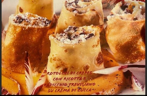 RICOTTA CHEESE AND TREVIGIANO RADICCHIO CREPES ROLLS WITH PUMPKIN SAUCE