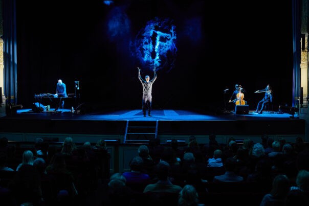 Elio Germano, Teho Teardo in PARADISO XXXIII di Elio Germano e Teho Teardo, drammaturgia Elio Germano, drammaturgia sonora Teho Teardo, con Laura Bisceglia violoncello, Ambra Chiara Michelangeli viola, disegno luci Pasquale Mari, video artisti Sergio Pappalettera e Marino Capitanio, scenografia Matteo Oioli, regia Simone Ferrari & Lulu Helbaek.