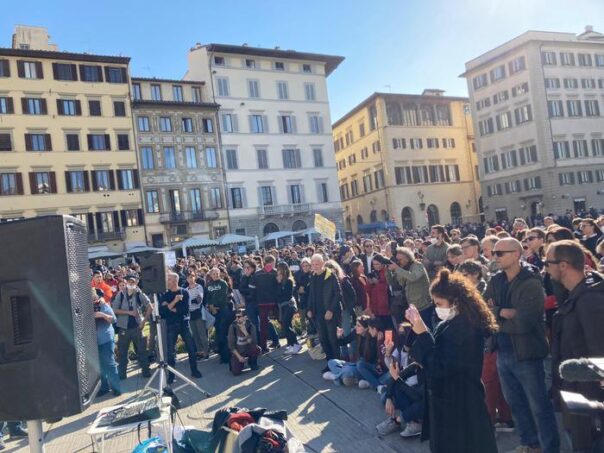 Senza incidenti le manifestazioni di coloro che hanno voluto esprimere dissenso al Green pass per accedere ai luoghi di lavoro: le principali sono state a Firenze e Livorno e si sono svolte in maniera pacifica con centinaia di persone. A Firenze, in piazza Santa Maria Novella, si è radunato per ore un migliaio di cittadini, fra cui una riconoscibile presenza di studenti universitari che hanno criticato le restrizioni e la gestione Covid dell’ateneo fiorentino. Durante il sit in sono stati fatti cori «Trieste, Trieste» in solidarietà coi portuali della città giuliana. Cori che si sono uniti a quelli di critica al premier Draghi e allo stesso Giani. Molte le bandiere tricolori sventolate ed è spuntato pure un vessillo anarchico che spesso ricorre nei cortei fiorentini.