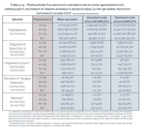 ROMA – Nell’ultimo bollettino di sorveglianza Covid.19, pubblicato dall”Istituto Superiore di Sanità,  riportato nella  Tabella sottostante,  si dimostrerebbe la scarsa protezione vaccinale per quanto si riferisce agli esiti letali, soprattutto nella fascia degli over80, per la quale il governo insiste nella somministrazione della terza dose. Anche su questi dati si sono basate evidentemente le ultime dichiarazioni prudenziali del Presidente Brusaferro.