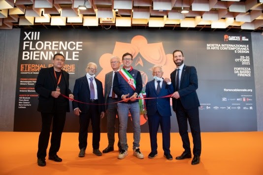 FIRENZE – Si è inaugurata questa mattina, 23 ottobre 2021, alla presenza di un foltissimo pubblico, la XIII Florence Biennale, mostra internazionale di arte contemporanea e di design, alla Fortezza da basso di Firenze. Il taglio del nastro è avvenuto nell’area teatro del Padiglione Spadolini alla presenza di alla presenza di Eugenio Giani, Presidente della Regione Toscana; Dario Nardella, Sindaco di Firenze; Pasquale Celona, Presidente di Florence Biennale; Piero Celona, Vice Presidente di Florence Biennale; di Andrea Pessina, Soprintendente Soprintendenza Archeologia, belle arti e paesaggio per la città metropolitana di Firenze e le province di Pistoia e Prato; Lorenzo Becattini, Presidente di Firenze Fiera; Umberto Cabini, Presidente di Fondazione ADI; Fortunato D’Amico, Curatore del Padiglione Cavaniglia e di Fondazione Pistoletto Città dell’Arte; Jacopo Celona, Direttore di Florence Biennale.
