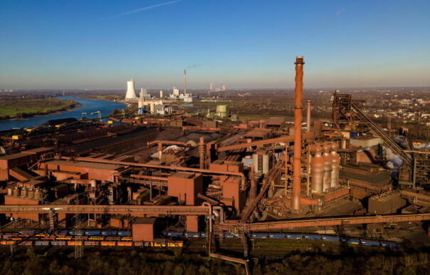 epa08827480 An aerial picture taken with a drone shows an blast furnace of German corporation ThyssenKrupp in Duisburg, Germany, 18 November 2020. On November 19, the ThyssenKrupp industrial group publishes its annual balance sheet for the 2019/20 fiscal year ended at the end of September. According to media reports, heavy losses are expected in the past fiscal year. This is mainly due to the steel division, which was hit hard by the economic crisis caused by the corona pandemic. EPA/FRIEDEMANN VOGEL
