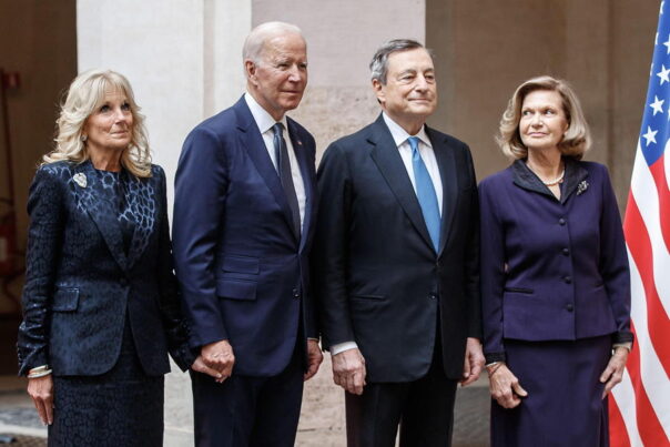Fin dall’inizio tra i coniugi Draghi e i Biden l’atmosfera appare rilassata: strette di mano e ampi sorrisi all’ingresso nella sede della presidenza del Consiglio. Le first lady poggiano su una colonna le borse, per affiancarsi ai mariti per la foto di rito, nella quale i Biden si tengono per mano. Poi Serena Cappello, che indossa un sobrio tailleur con gonna porpora, dell’atelier Camillo Bona, accompagna l’ospite al piano nobile del palazzo, dove restano sole per una lunga conversazione davanti al tè. La moglie del presidente Usa porta in dono una copia de ‘Il vecchio e il mare’ di Ernest Hemingway, perché informata della passione della padrona di casa per la letteratura. Tra i temi di discussione c’è quello della prevenzione del cancro al seno, su cui Biden è molto impegnata e Draghi altrettanto sensibile: sono cruciali assistenza medica e psicologica, concordano.