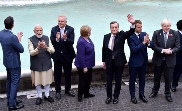 G20 Roma: i leader lanciano monetina nella Fontana di Trevi