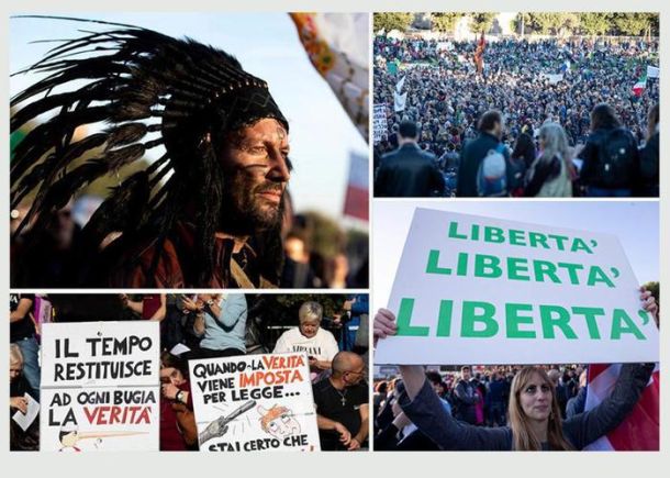 Anche cartelli ‘Green pass’ con le due lettere finali che riproducono i caratteri delle SS naziste. Alla manifestazione, regolarmente preavvisata, erano attese mille persone.