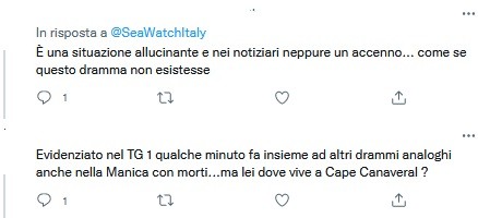 CATANIA – Le ineffabili Ong continuano nella strategia di allarmare le autorità denunciando il pericolo tremendo per i migranti imbarcati a causa del mal di mare,,,, Sea Watch 4, che da tempo, senza aver avuto alcuna autorizzazione, stazione presso le coste di Catania per sbarcare ik suo carico, ribadisce con un tweet la sua volontà di costringere una volta di più il Governo italiano alla resa, Che sicuramente avverrà fra non molto tempo.
