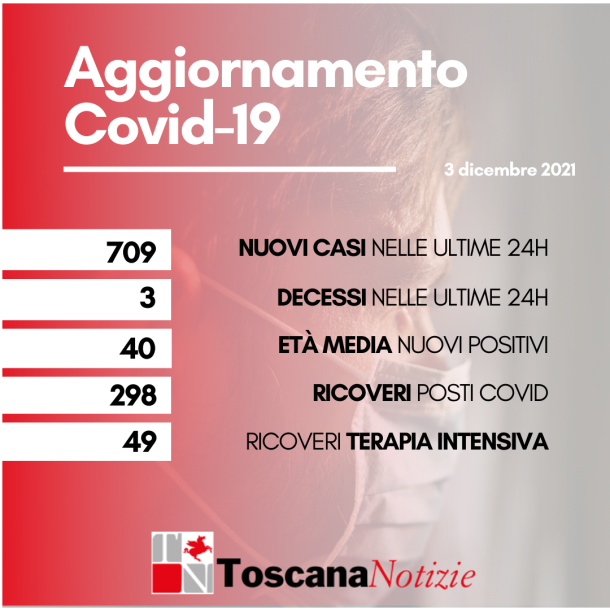 Coronavirus in Toscana: 3 morti (a Lucca, Pisa e Siena) oggi 3 dicembre. E 709 contagi (nuovo picco)