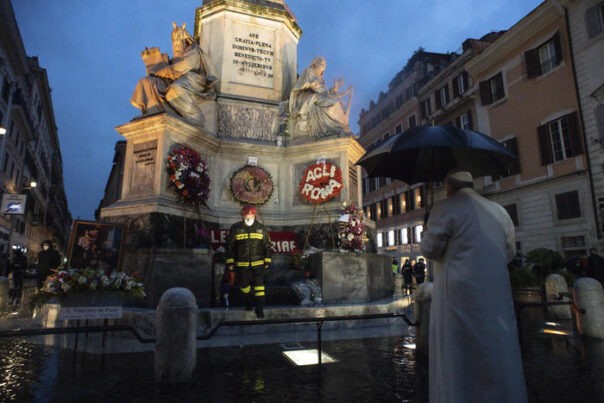 Mentre attorno era notte, rende noto la Sala stampa vaticana, dopo avere deposto alla base della colonna un cesto di rose bianche, il Papa si è fermato in preghiera, chiedendo a Maria il miracolo della cura, per i tanti malati; della guarigione, per i popoli che soffrono duramente per le guerre e la crisi climatica; e della conversione, perchè sciolga il cuore di pietra di chi innalza muri per allontanare da sè il dolore degli altri.