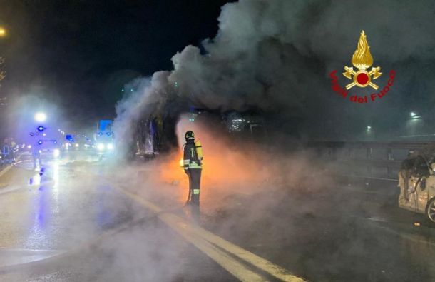 A1, Calenzano: incidente fra due mezzi pesanti e un’auto, incendiati. Due persone soccorse dal 118