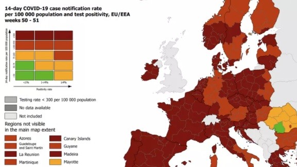 La Romania ha vissuto un’ondata molto dura di Covid-19 all’inizio dell’autunno, che ha provocato decine di migliaia di morti e che è stata combattuta con chiusure e restrizioni, dato che i tassi di vaccinazione sono molto bassi. La Commissione Europea ha proposto tempo fa di cambiare i criteri con cui la mappa viene redatta, inserendo i tassi di vaccinazione, ma la raccomandazione non è ancora stata tradotta in pratica.