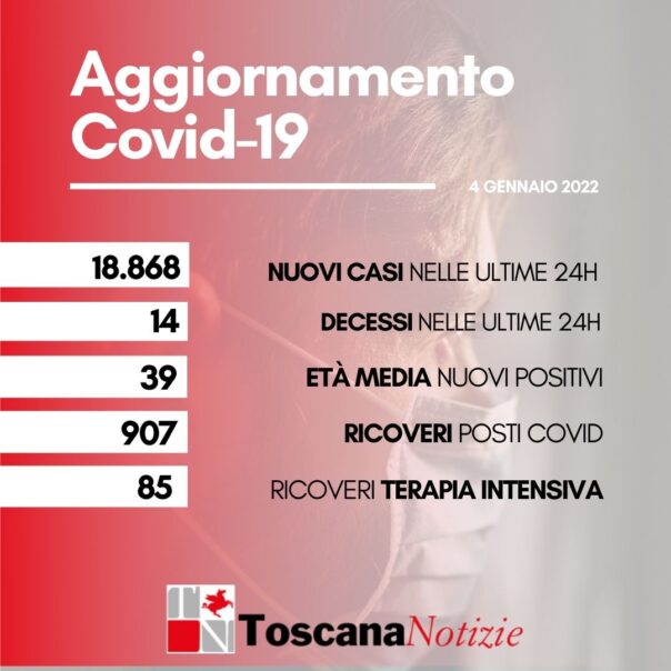 Covid 19 Toscana: oggi 4 gennaio aumentano i decessi (14, età media 83,4 anni) e record assoluto contagi (18.868)