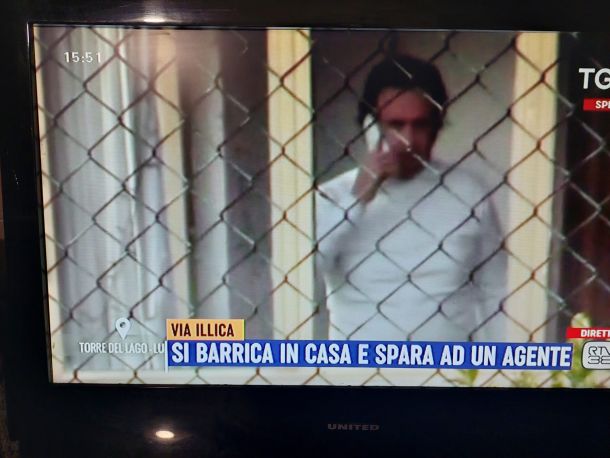 E’ ancora barricato in casa a Torre del Lago l’uomo ha sparato alcuni colpi di pistola ferendo un vigile del Fuoco. Si tratta di Gianluigi Ragoni, 44 anni. Le forze dell ordine per evitare tragedie hanno staccato luce e gas dall’appartamento.L’arma con cui ha sparato è una calibro 22. Il vigile del Fuoco ferito ha avuto 10 giorni di prognosi.