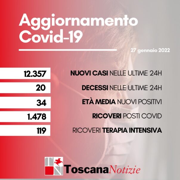 Covid in Toscana: 20 morti, oggi 27 gennaio. E 12.537 contagi. Oltre 700mila da inizio pandemia