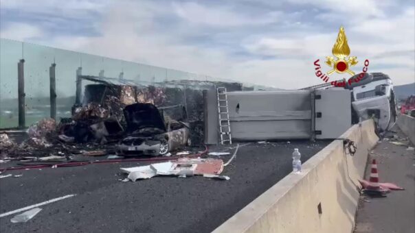 Sul posto proseguono inoltre le operazioni di raffreddamento dei Vigili del Fuoco, a seguito delle quali verranno eseguite le operazioni di rimozione dei mezzi incidentati, le necessarie attività volte al ripristino della pavimentazione e delle barriere di sicurezza danneggiate.