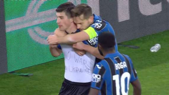 ATENE – L’attaccante ucraino dell’Atalanta Ruslan Malinovskyi è il grande protagonista della vittoria della ‘Dea’ sull’Olympiacos per 3-0 nel match di ritorno del playoff di Europa League con due reti realizzate in due minuti tra il 67′ e il 69′. Prima il piazzato in area sotto la traversa per il 2-0. Poi una magia da fuori imprendibile per il portiere che fissa il punteggio sul 3-0 finale. Ma soprattutto una dedica speciale alla sua Ucraina. Dopo la prima rete il giocatore atalantino ha infatti alzato la maglia nerazzurra, sotto una t-shirt bianca con la scritta “No war in Ukraine”. Ieri in Champions il compagno di nazionale Yaremchuk (del