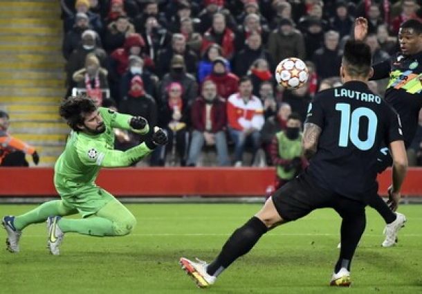Il gol di Lautaro Martinez che dà all’Inter la vittoria ad Anfield ma non la qualificazione (Foto ANSA)