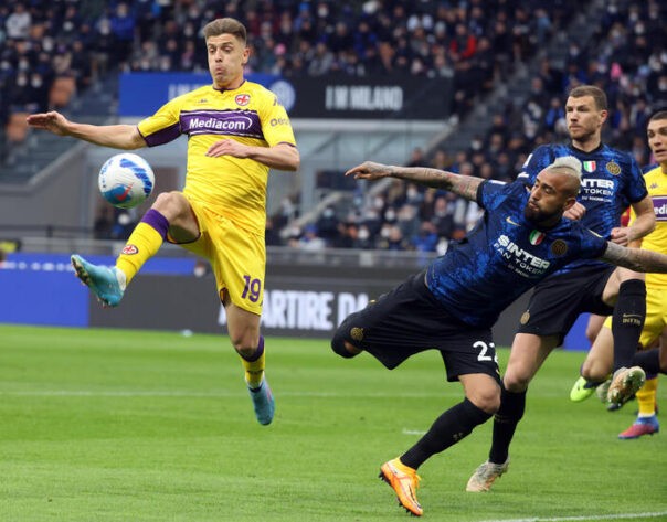 SAPONARA – Manovra Cahlanoglu che non triova sponda dal nerboruto Vidal, arginato dal “nano” Torreira. Al 20′ doppia occasione viola, buona manovra: prima è Gonzalez murato da Skriniar, quindi Saponara che trova uno stinco di Vidal al limite. Fiorentina aggressiva e anche bella a vedersi. Handanovic (29′) deve uscire con la sua imponenza rovinando addosso a Gonzalez lanciato a rete. Tutto regolare per Chiffi. Dopo una sortita di Vidal, viola di nuovo in avanti: Cahlanoglu brutalizza di nuovo il povero Gonzalez. Punizione: batte Castrovilli per Saponara. Ancora murato.