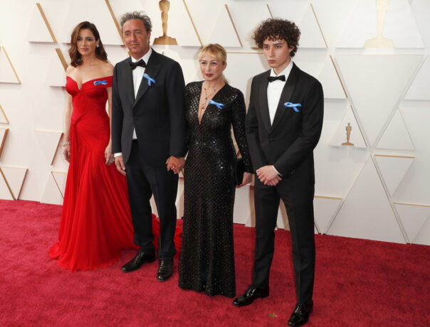 La guerra in Ucraina ha trovato spazio in un minuto di silenzio e in tanti nastrini azzurro-gialli indossati dalle star, ma l’atteso collegamento con il presidente ucraino Volodymyr Zelenksky non si è concretizzato, contro gli appelli di star come Sean Penn che aveva minacciato di fondere in diretta le sue due statuette se questo non fosse successo.