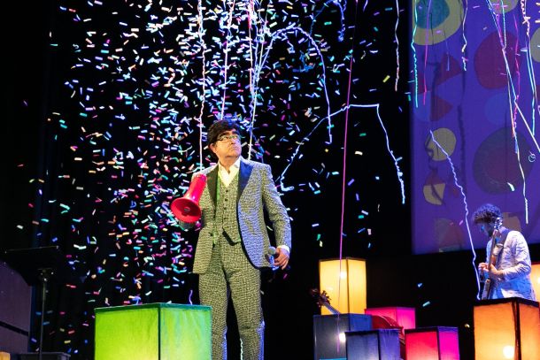 Sul palco, nella coloratissima scenografia disegnata da Giorgio Gallione, troveremo assieme a Elio cinque musicisti, i suoi stravaganti compagni di viaggio, che formeranno un’ insolita e bizzarra carovana sonora: Seby Burgio al pianoforte, Martino Malacrida alla batteria, Pietro Martinelli al basso e contrabbasso, Sophia Tomelleri al sassofono, Giulio Tullio al trombone. A loro toccherà il compito di accompagnare lo scoppiettante confronto tra due saltimbanchi della musica alle prese con un repertorio umano e musicale sconfinato e irripetibile, arricchito da scritti e pensieri di compagni di strada, reali o ideali, di “schizzo” Jannacci. Da Umberto Eco a Dario Fo, da Francesco Piccolo a Marco Presta, a Michele Serra. Uno spettacolo giocoso e profondo perché “chi non ride non è una persona seria”.