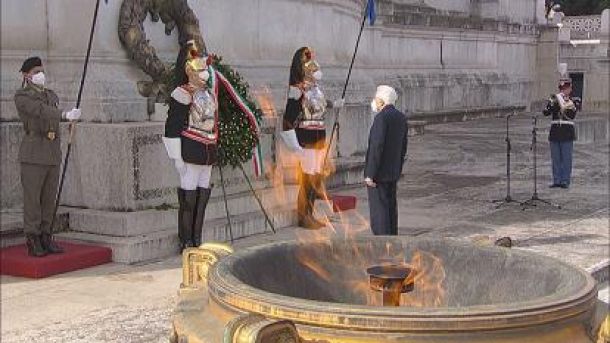 Presenti anche il ministro della Difesa, Lorenzo Guerini, il sindaco di Roma, Roberto Gualtieri e il presidente della Regione Lazio, Nicola Zingaretti. Il capo dello Stato ha deposto una corona d’alloro e poi osservato un minuto di raccoglimento.