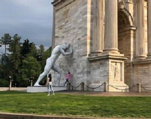 FIRENZE – Una figura maschile monumentale di circa 6 metri, nuda, si appoggia all’Arco della Pace, a Milano; il suo nome è Mr Arbitrium’, opera in resina dello scultore Emanuele Giannelli. Dopo essersi appoggiata a chiese e monumenti a Pietrasanta, Lucca e Carrara, la statua dalle proporzioni neoclassiche rimarrà installata a Milano fino al prossimo 15 luglio, per poi tornare in Toscana, con tappa alla chiesa di San Lorenzo a Firenze.