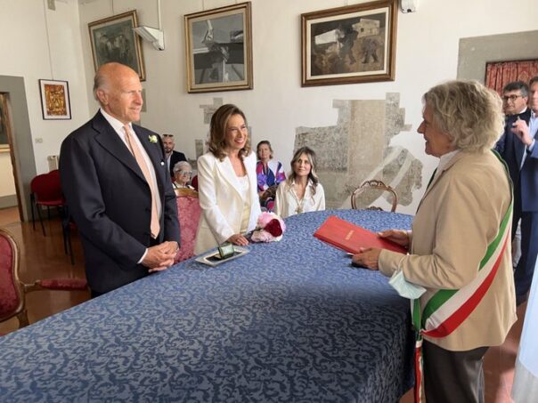 Matrimonio a Fiesole: Cesara Bonamici ha sposato Joshua Kalman. Ospiti Clemente Mimun, Cesare Prandelli, Emanuele Filiberto di Savoia