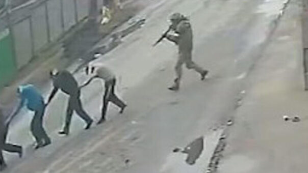 I video ottenuti dal New York Times risalgono al 4 marzo. Nelle immagini si vedono le forze paracadutiste russe che catturano un gruppo di uomini ucraini che vengono condotti in fila verso un cortile dove poco dopo verranno giustiziati: gli uomini, se ne contano 9, camminano ricurvi, con un braccio sulla testa e l’altro a tenere la cintura del compagno davanti.