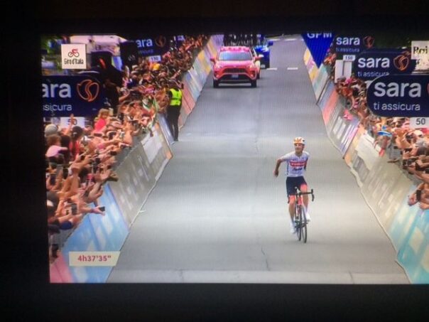 COGNE (AO) – Grande impresa di Giulio Ciccone nel tappone alpino piemontese che si è concluso con la lunga ascesa di Cogne (22 km), dopo aver superato altri due salite impegnative. Lo scalatore abruzzese, tornato alla vittoria dopo 2 anni, Al secondo posto si è piazzato il colombiano Santiago Buitrago Sanchez